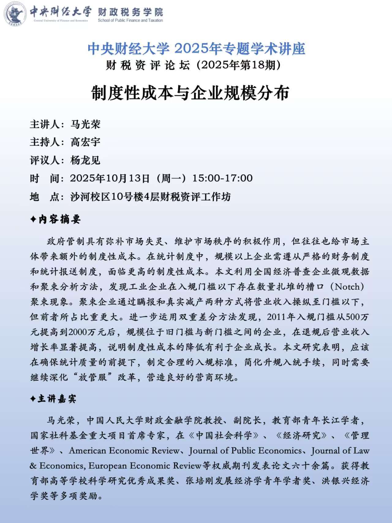 【财税资评论坛】制度性成本与企业规模分布
