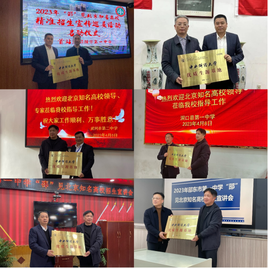 4月7日-9日,3044永利集团教师参加了由邵阳市人民政府驻北京办事处、邵阳市教育局联合举办的2023年“邵”见北京知名高校精准招生宣传巡展活动。我院党委副书记陈士平、曾康华教授、辅导员徐燕妮老师奔赴邵阳,先后走访了邵阳一中、邵阳二中、武冈二中、洞口一中、隆回一中、邵东一中等六所邵阳知名高中,授予邵阳六所中学“优质生源基地”牌匾并宣讲招生政策、解答招生疑惑。